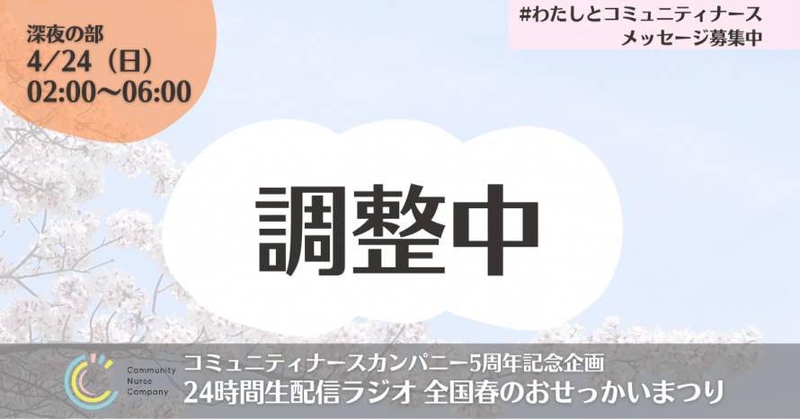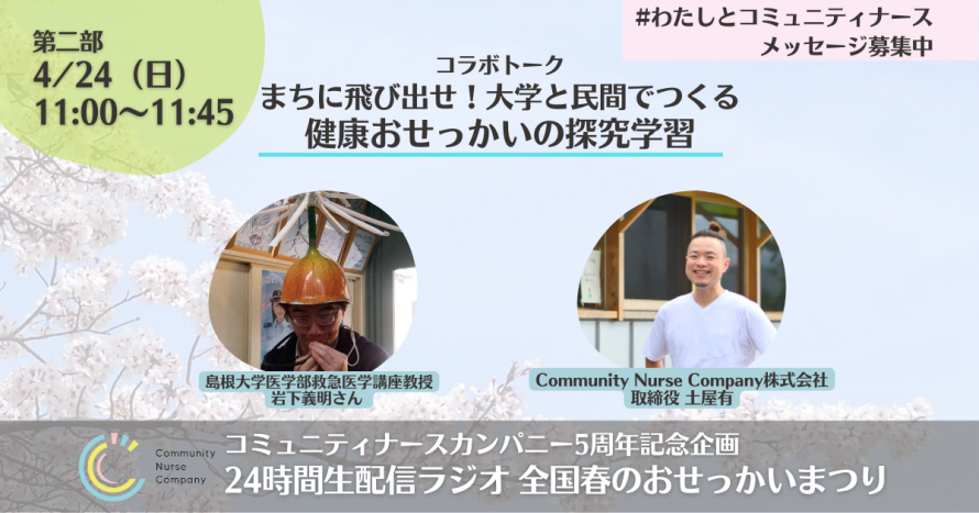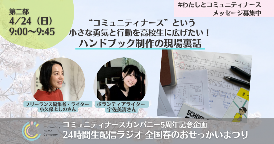 facebookライブでも配信します! Community Nurse Companyのページをフォローください。 https://www.facebook.com/CommunityNurseCompany