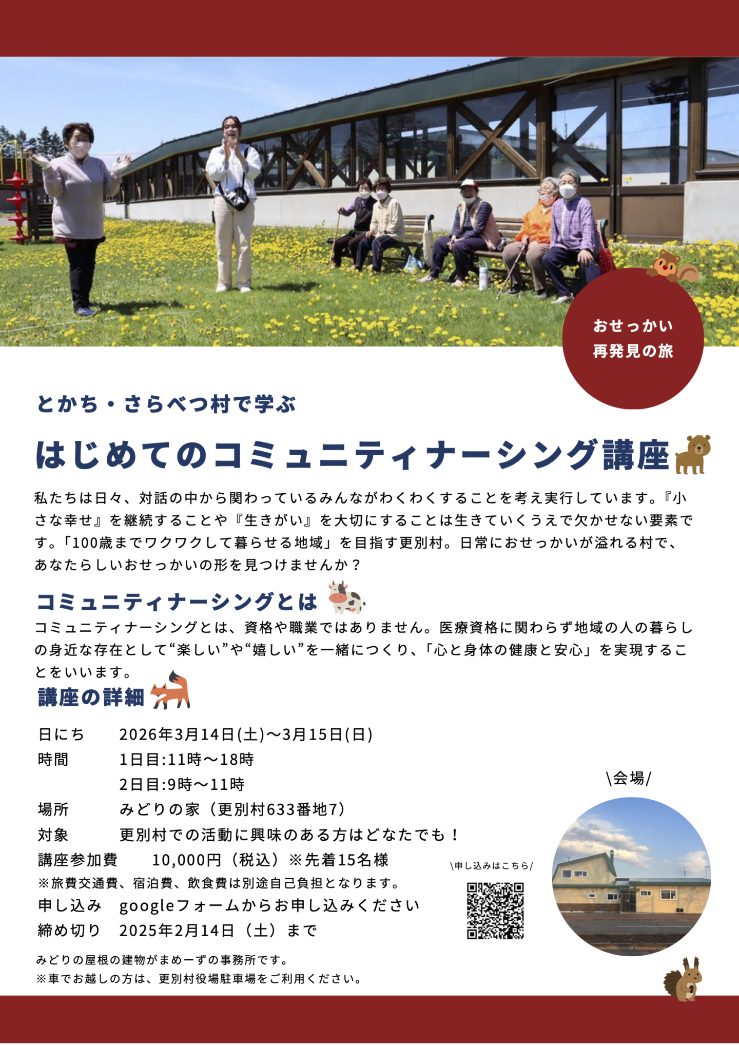 とかち・更別村で学ぶ はじめてのコミュニティナーシング講座(応募〆切2/14)